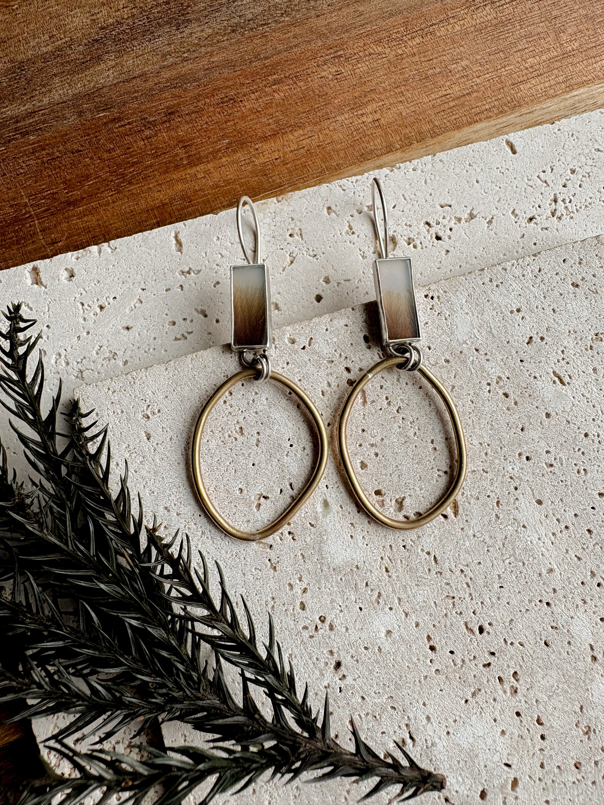 Sterling silver • Fine silver bezel • brass hoops