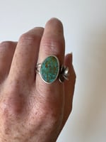 This Royston Turquoise ring bursts with vibrant blue-green hues and earthy brown matrix, like desert sky meeting rugged land. Finished with a hand-cast silver succulent, it celebrates resilience and beauty thriving in unexpected places. A bold, spirited piece made to stand out.