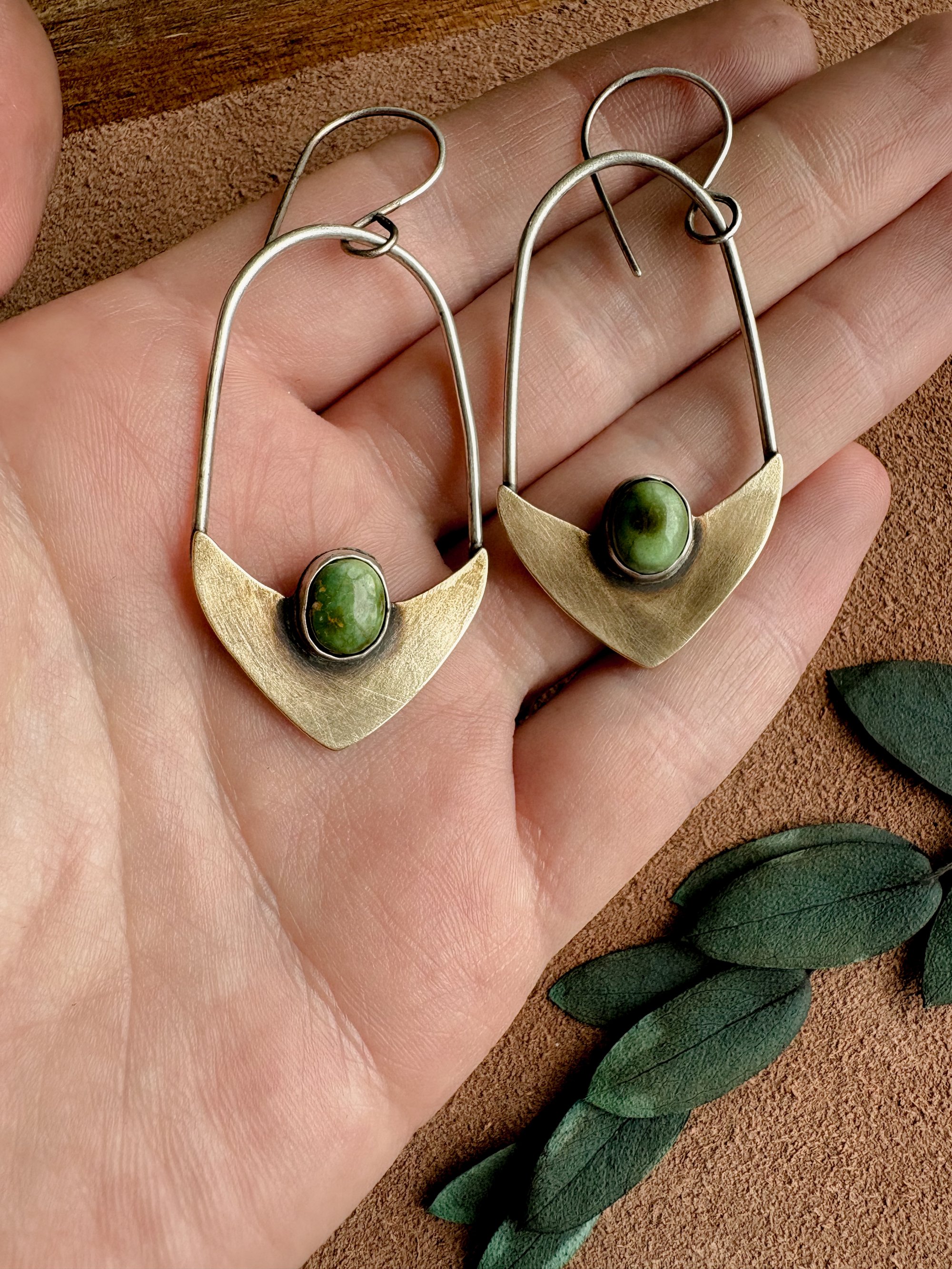 Elevate your everyday style with these hand-formed brass statement earrings. Each pair is sawed, and finished by hand, giving them a soft, organic shine that complements any outfit.