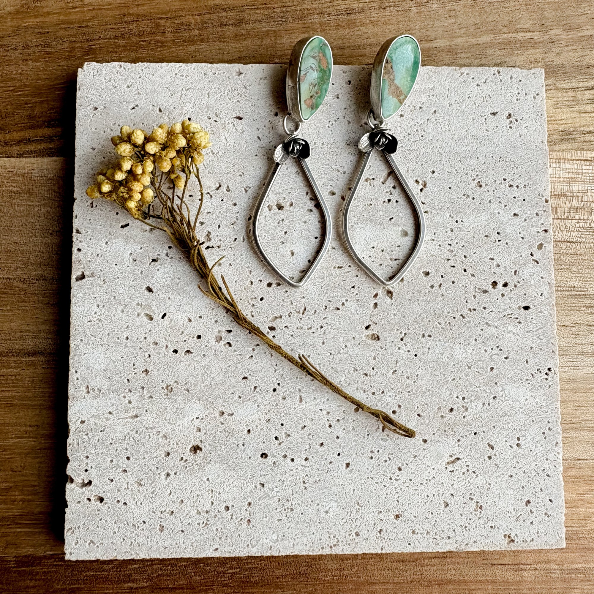 Designed for lovers of nature and artisan craftsmanship, these earrings combine the cool elegance of sterling silver with the earthy vibrance of genuine turquoise. A cast sterling silver succulent adds a sculptural, desert-inspired element — a nod to organic beauty captured in precious metal.